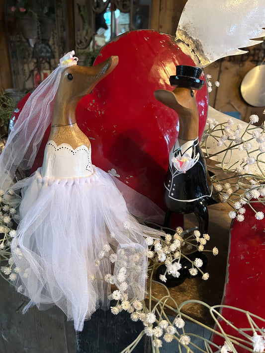 Wooden Duck Bride & Groom Set – 25cm Tall Wedding Ornament