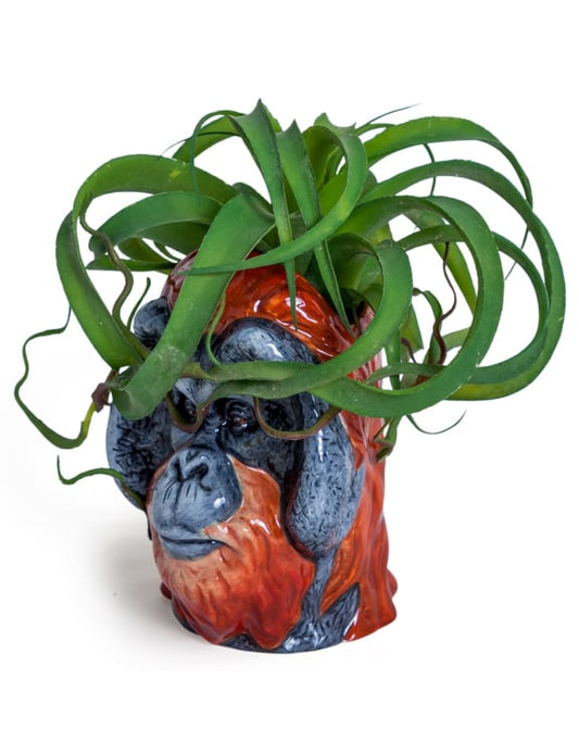 Hand Painted Ceramic Orangutan Head Storage Jar / Vase – Unique Statement Décor