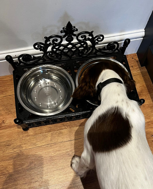 Vintage Style Black Dog Bowls with Cast Iron Stand
