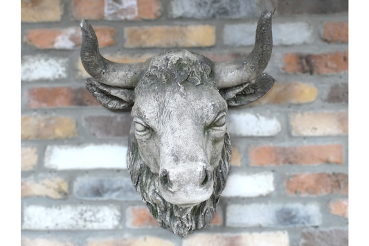 Cow Head Wall Mount – Stone Effect Animal Sculpture | Rustic Farmhouse Decor