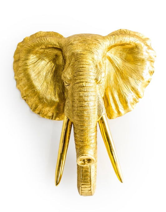 Extra Large Antique Gold Elephant Wall Head – Majestic Resin Sculpture
