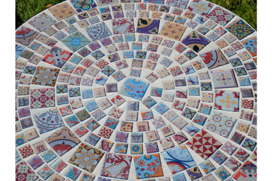 Mosaic Table and Two Chairs Set - Wrought Iron and Coloured Glass Tiles for Outdoor Elegance