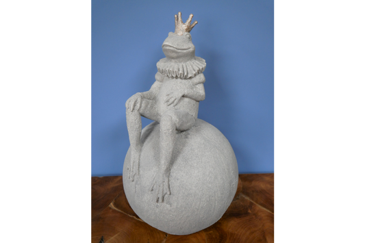 King Frog on Ball Sculpture - Resin Frog with Concrete Look