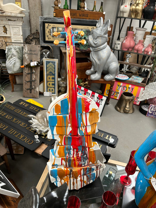Splash Painted Violin Sculpture – Rotating Resin Art on Black Marble Base