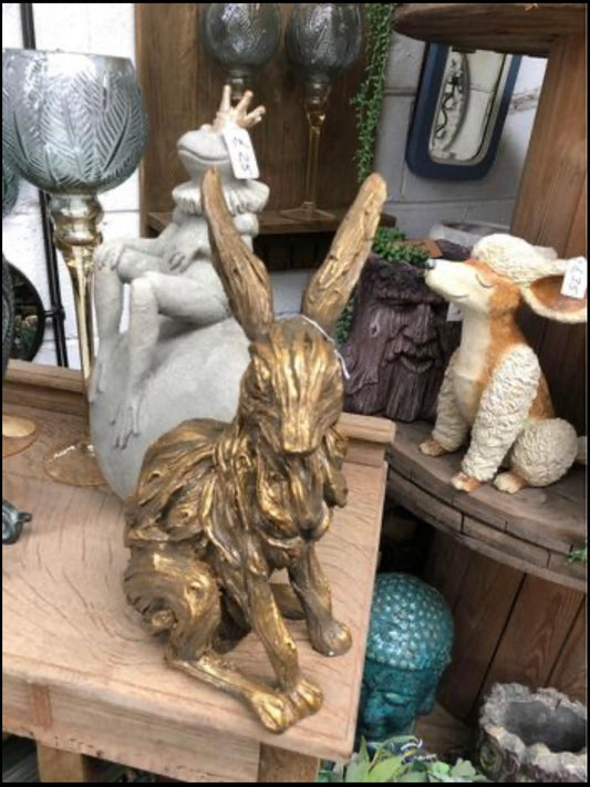 Gold Hare Ornament - Elegant Resin Hare with Twisted Willow Effect