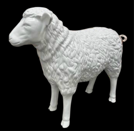 White Life-Size Sheep Sculpture - Resin Art for Indoor and Outdoor Elegance