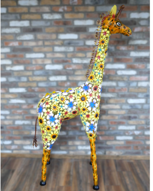 Flowered Metal Giraffe Sculpture - Large Outdoor Garden Décor