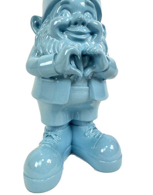 Medium Bright Blue "Heart Hands" Gnome Figure – Whimsical and Loving Decor