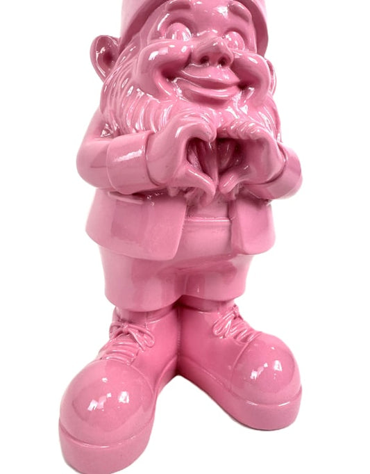 Medium Bright Pink "Heart Hands" Gnome Figure – Whimsical and Loving Decor