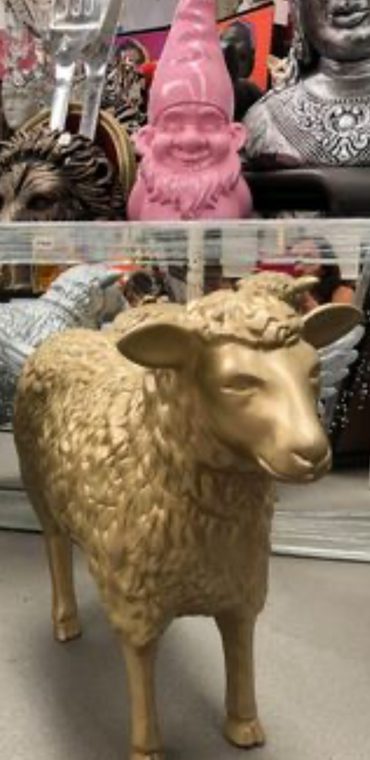 Life-Size Gold Sheep Sculpture - Indoor/Outdoor Resin Ornament