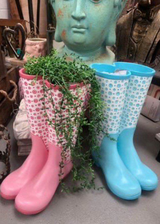 Wellington Boot Planter - Bright Blue Resin Planter for Flowers, Plants, or Umbrellas