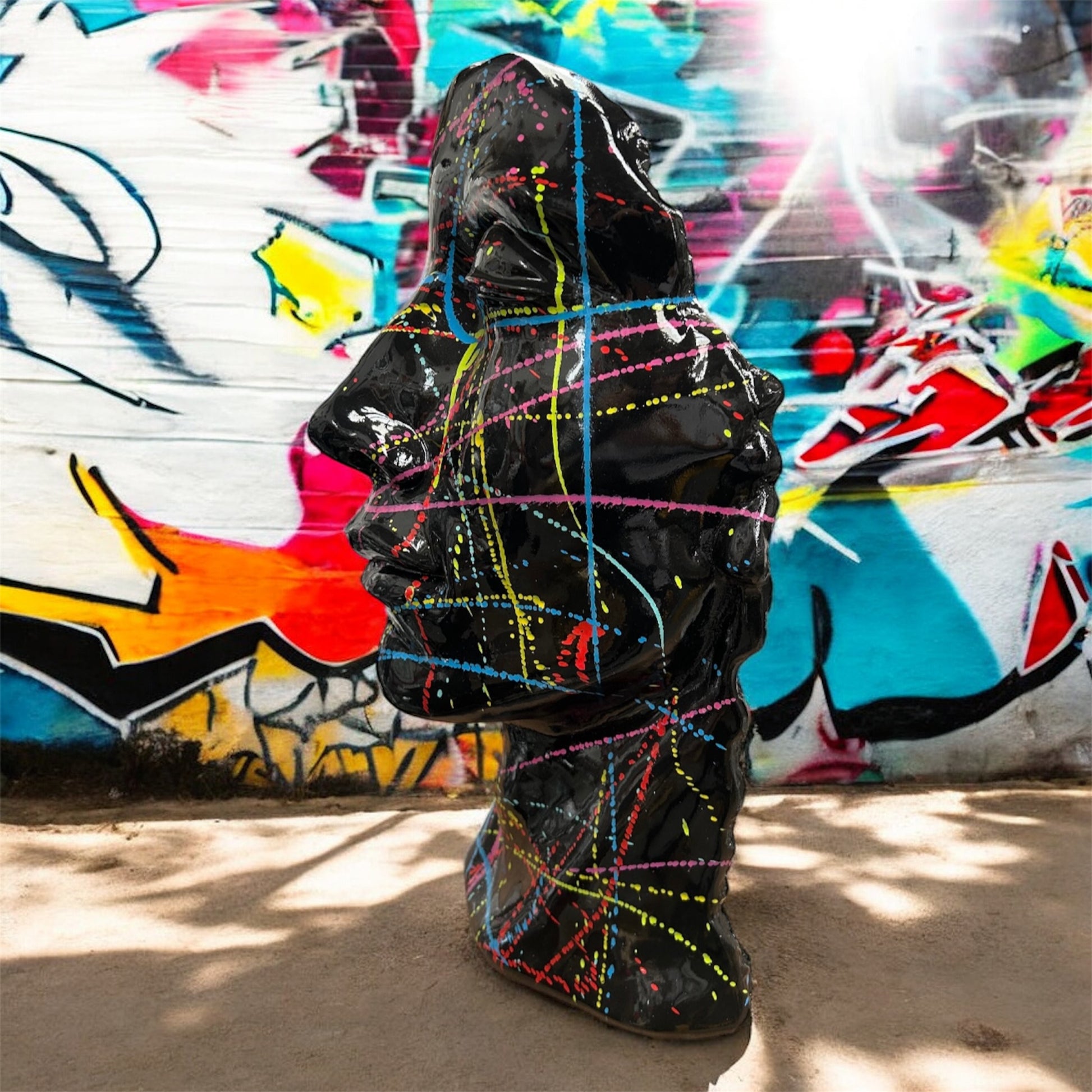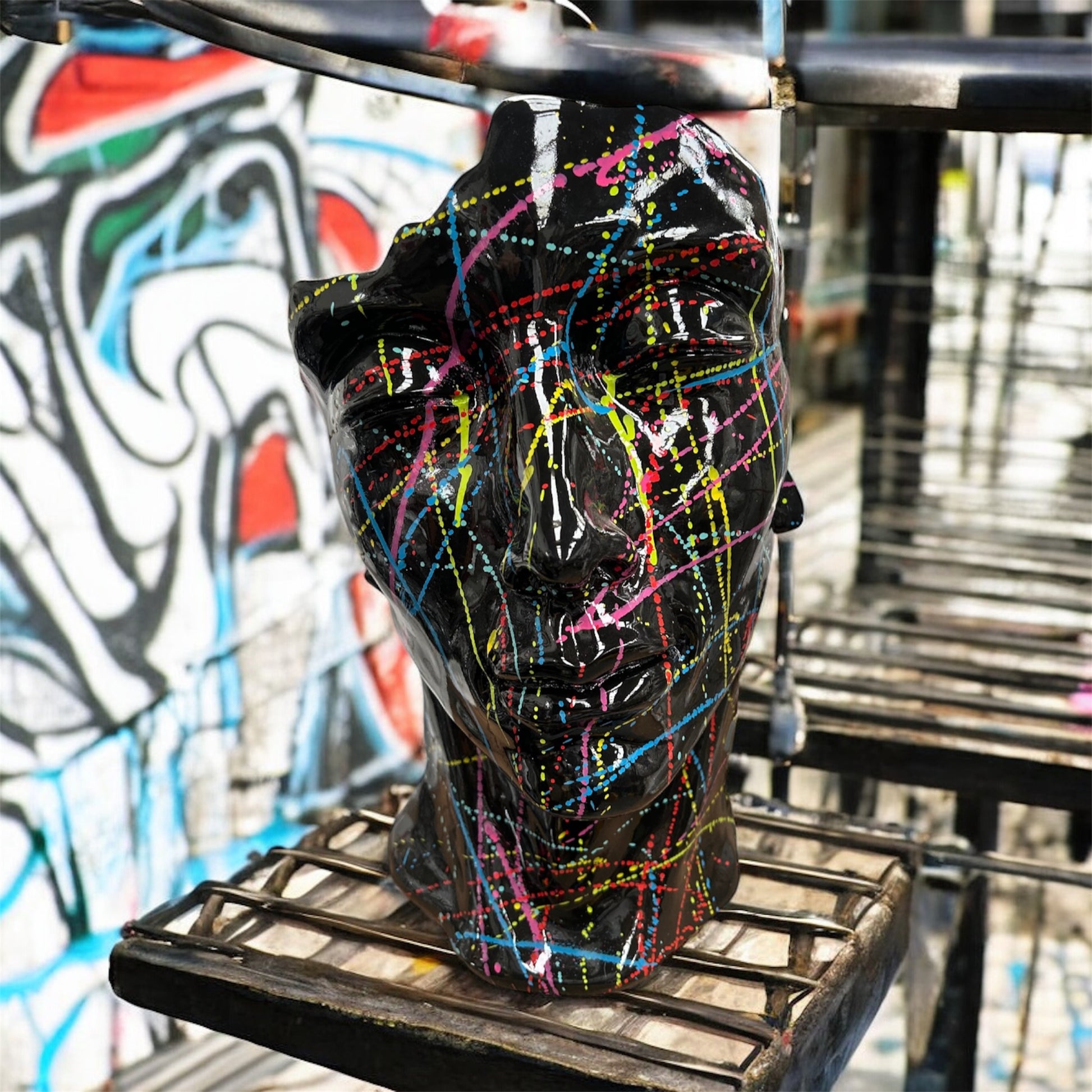 Black Splash Face Sculpture – Modern Artistic Head Statue