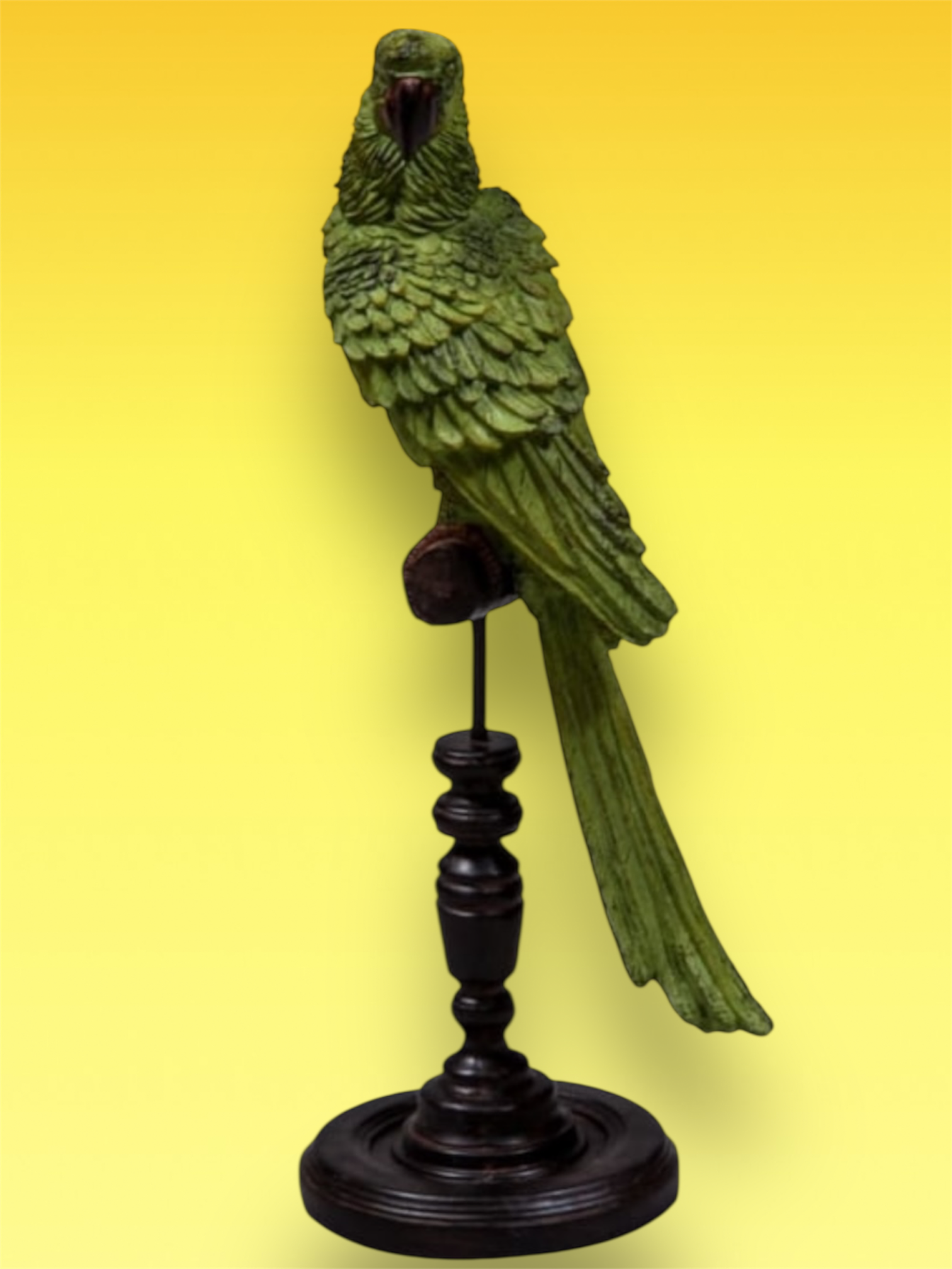 Add a burst of personality with the Green Parrot on Perch Figure – a bold accent for bird lovers and statement decor fans alike.
