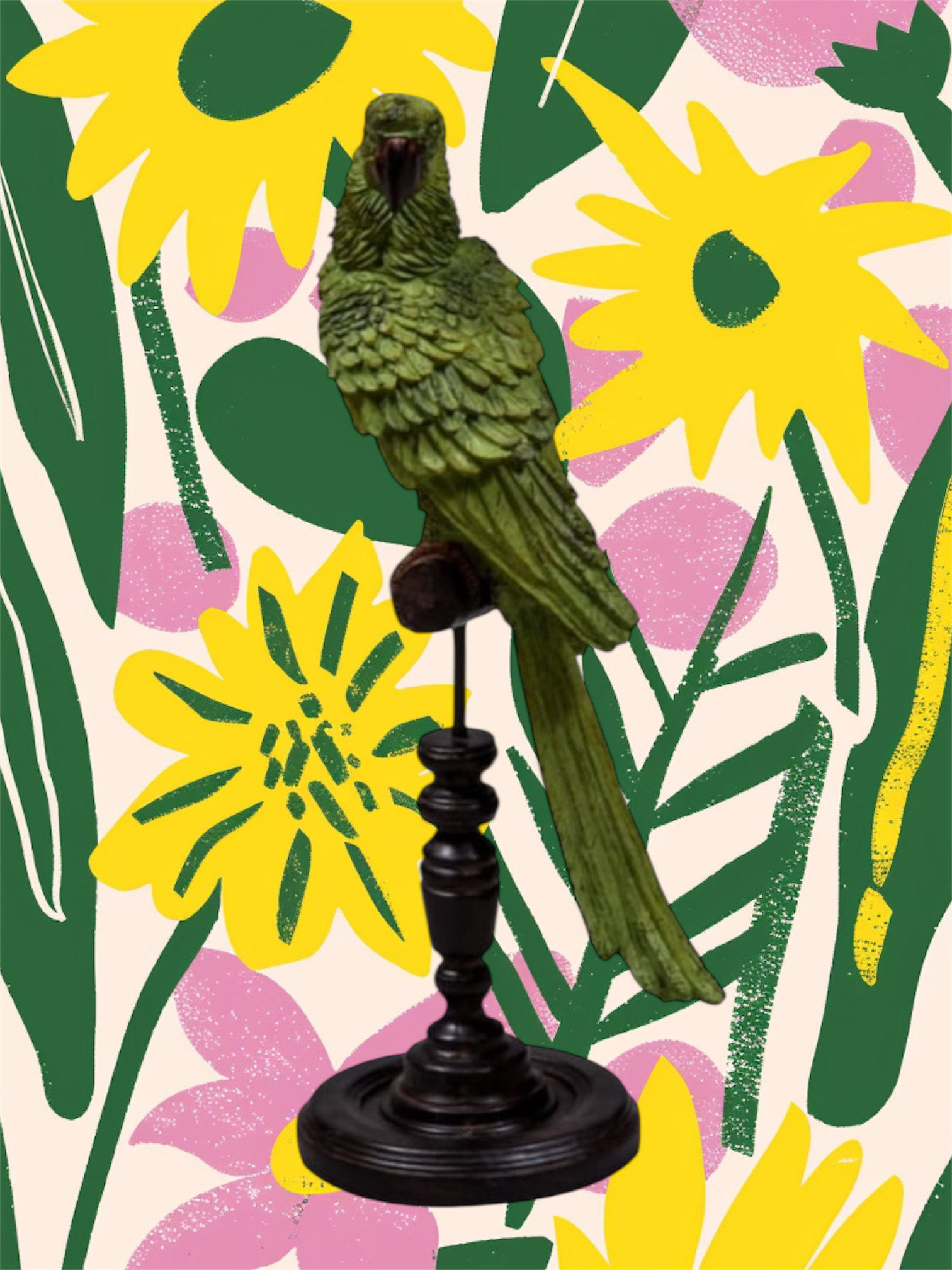 Perfect for bookshelves, sideboards, or indoor garden corners, this eye-catching parrot makes a playful addition to both modern and eclectic interiors.