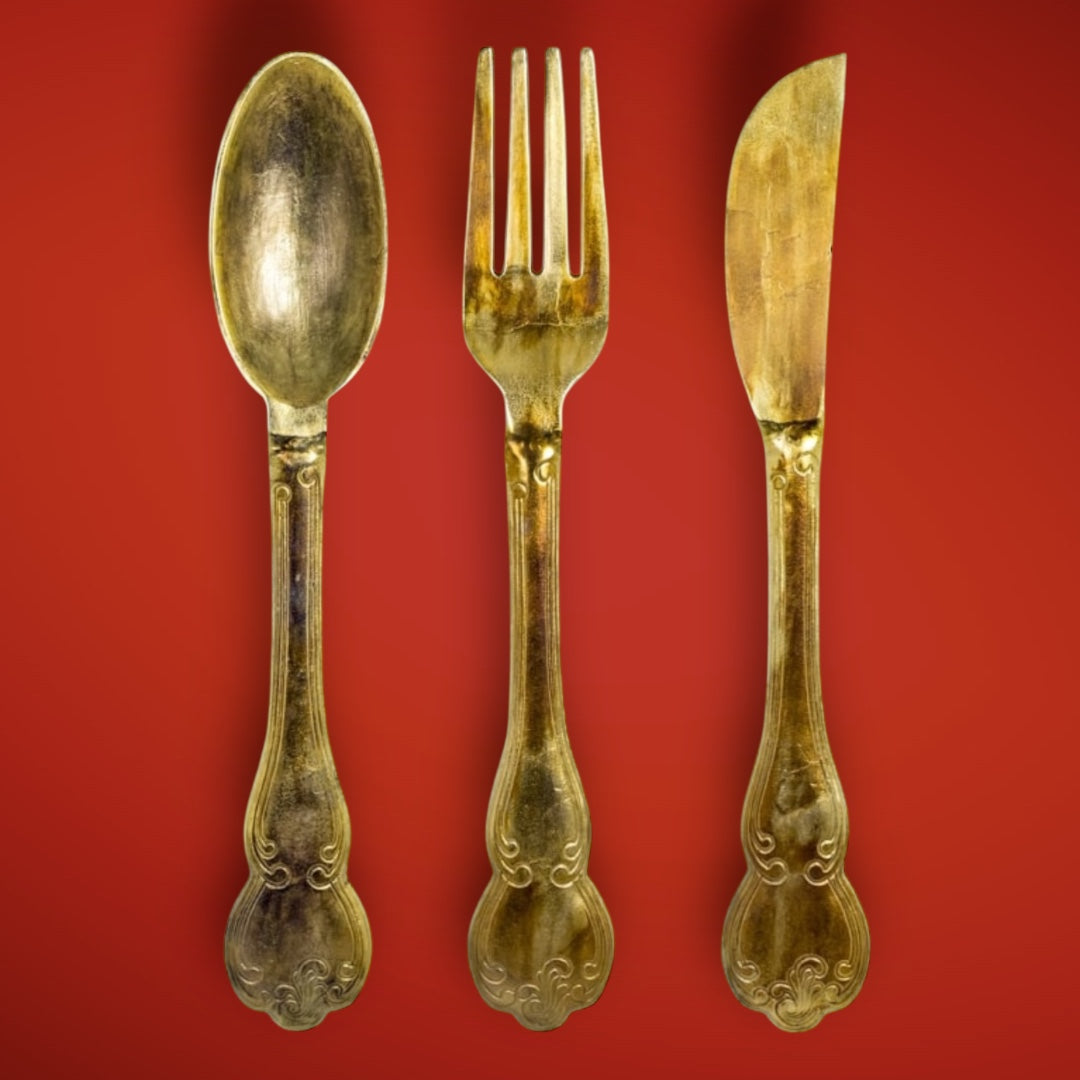 Huge Brass Knife, Fork, and Spoon Wall Art Set – Elegant Culinary Wall Decor | Sign of the times Stoke