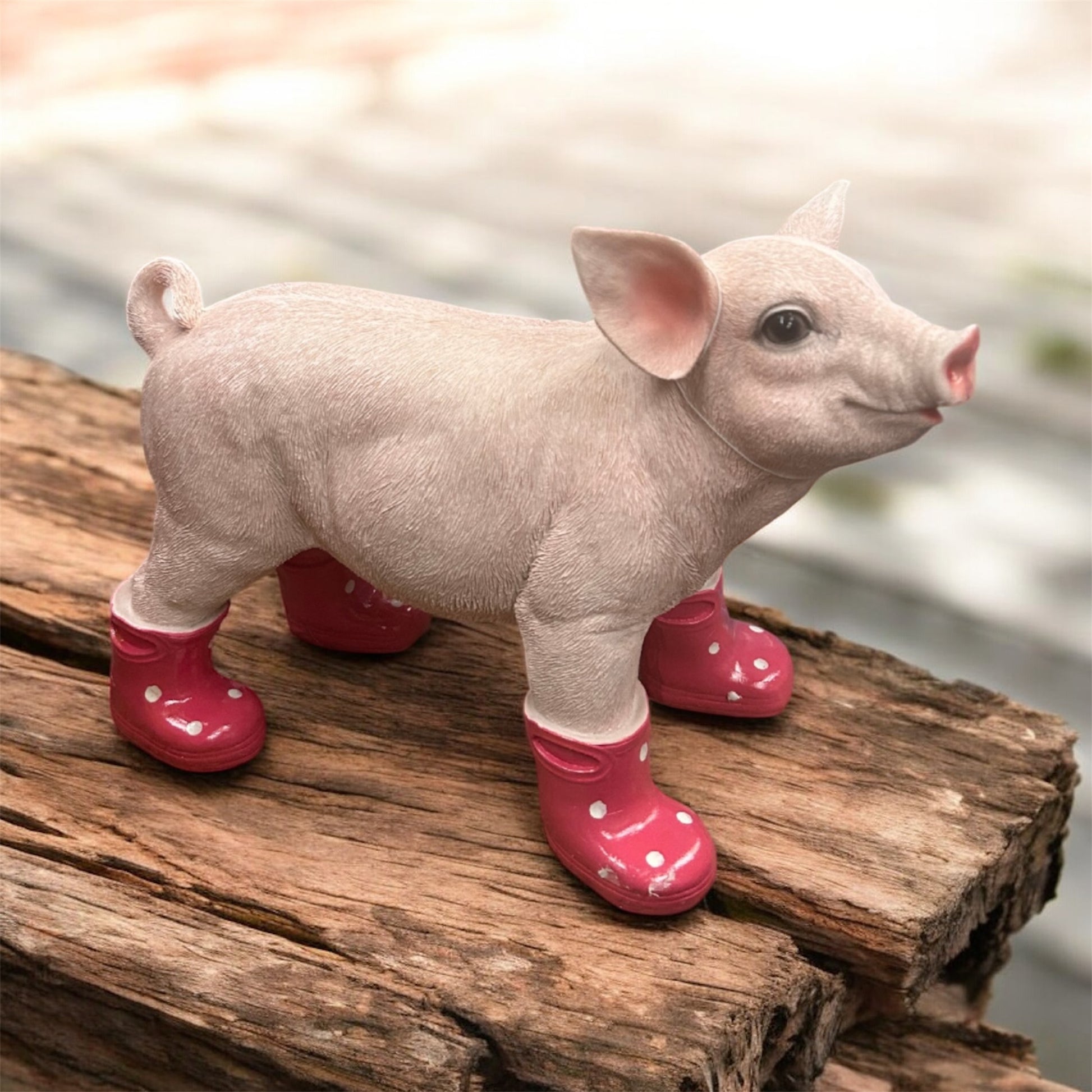 Pig with Wellies – Cute Pink Resin Farm Animal Ornament